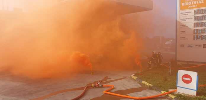 Σύμφωνα με το σενάριο, στο χώρο των αντλιών του πρατηρίου εκδηλώθηκε πυρκαγιά σε όχημα Ι.Χ. κατά το ανεφοδιασμό του, ενώ υπήρχε και κίνδυνος μετάδοσης της πυρκαγιάς στις δεξαμενές καυσίμων και στο κτίριο του καταστήματος (γραφείο) του πρατηρίου.
