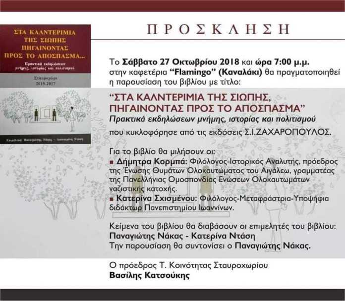 Η εκδήλωση περιλαμβάνει την παρουσίαση του βιβλίου «Στα καλντερίμια της σιωπής, πηγαίνοντας προς το απόσπασμα»