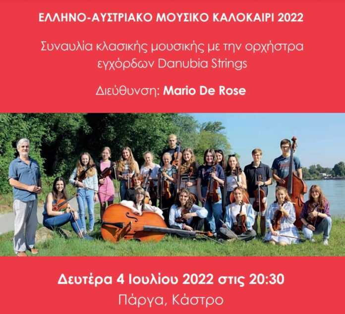 Ο Δήμος Πάργας σε συνεργασία με την Πρεσβεία της Αυστρίας στην Αθήνα ,το Ζωγράφειο Σχολείο, το κέντρο Ελληνο-Αυστριακής Διασύνδεσης και το Μουσικό Σχολείο Ιωαννίνων «Νικόλαος Δούμπας», διοργανώνουν συναυλία κλασικής μουσικής με την ορχήστρα εγχόρδων Danubia Strings της παραδουνάβιας περιοχής της Κάτω Αυστρίας, στο Κάστρο της Πάργας την Δευτέρα 4 Ιουλίου στις 20.30 με ελεύθερη είσοδο.