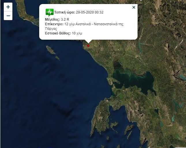 Σεισμός μεγέθους 3,2 Ρίχτερ σημειώθηκε χθες στις 00:32 Νοτιοανατολικά της Πάργας.