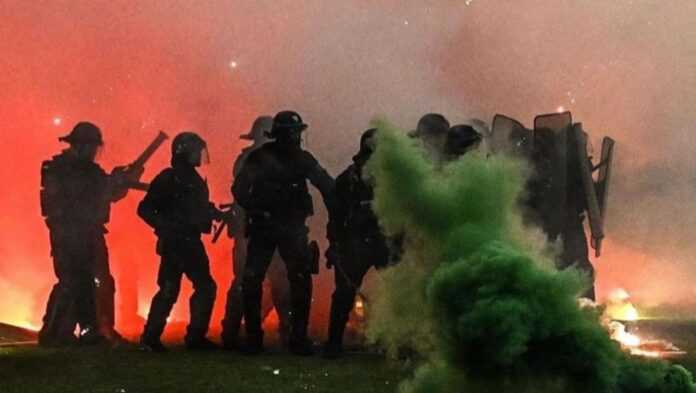 Η κατάσταση βγήκε εκτός ελέγχου, ο κόσμος ήθελε να ξεσπάσει και οι ποδοσφαιριστές ήταν απροστάτευτοι. Αστυνομικές δυνάμεις μπήκαν στον αγωνιστικό χώρο για να τους σταματήσουν, κάνοντας χρήση δακρυγόνων.